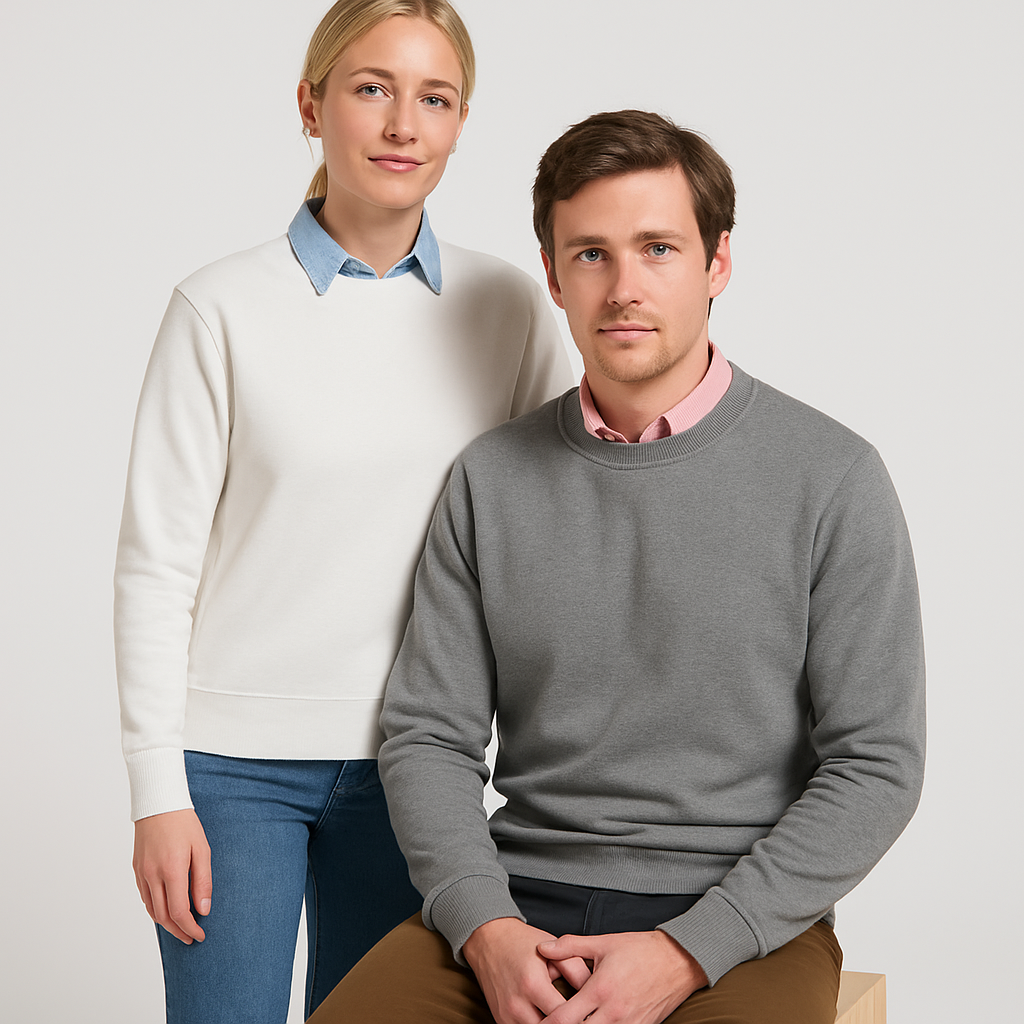 Sudadera de algodón con diseño clásico, y felpa perchada en el interior. Cuellos, puños y bajo con canalé 1x1. Cubrecosturas reforzado en el interior del cuello.